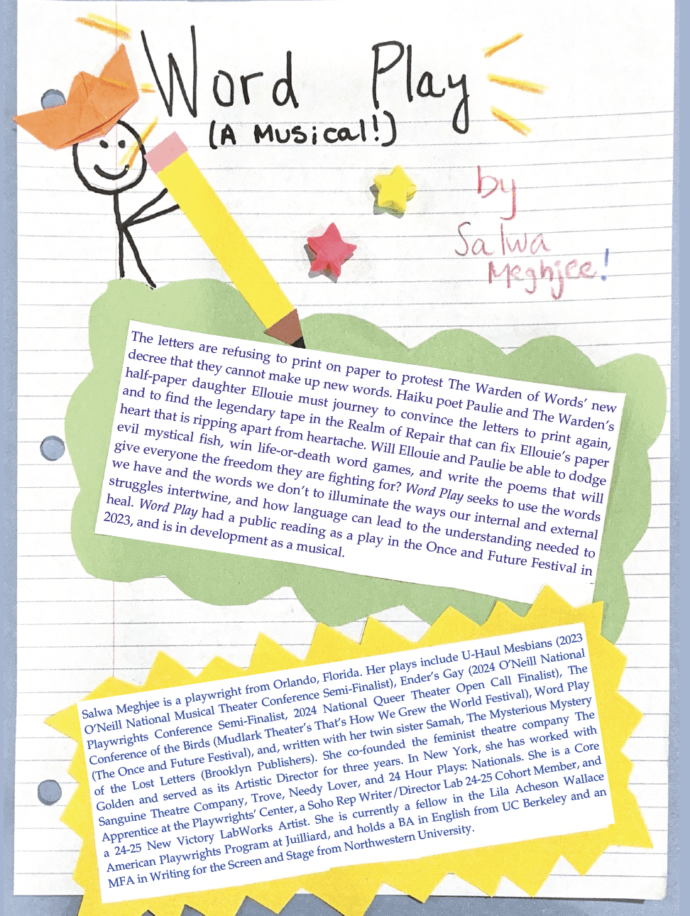 Salwa is in Soho Rep's 24/25 Writer Director Lab. She is working with director Zahra Budhwani.